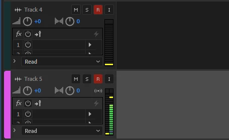 YOu can see stereo track 5 is recording on the rh channel where as 4 (mono) isn't recording. In a way this isn't that surprising as the mapping says right is channel 2 (if I understand it right)