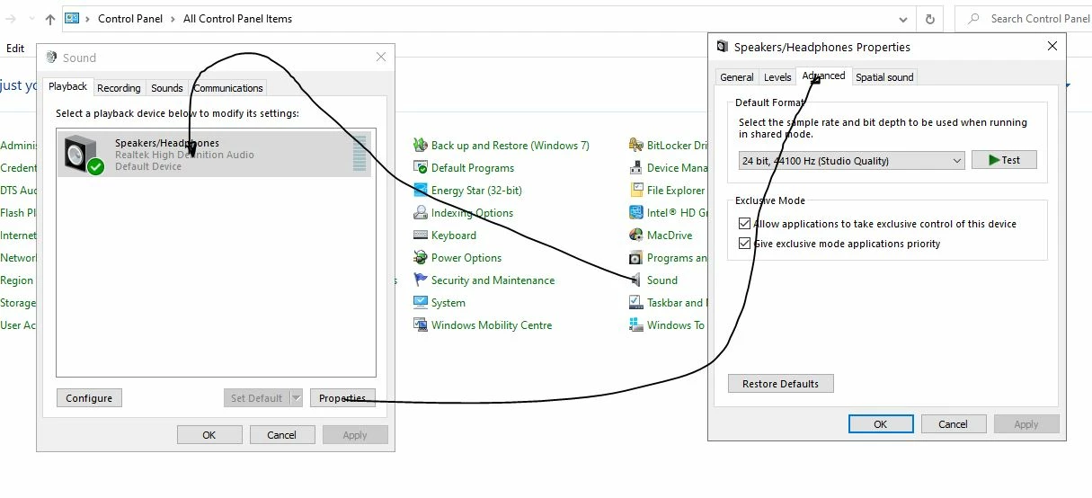 I have changed my audiocard setting from 24bit 48000 to 24bit 44100 just because I play lots of music music and I don't like to want to use wasapi exlusive in foobar2000 or musicbee under windows 10