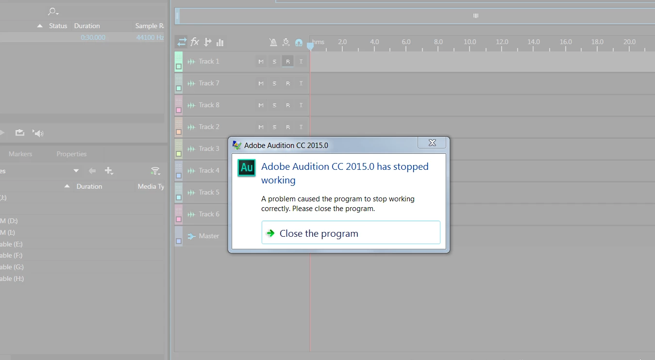 I am trying to record 8 tracks in the multitrack mode. The program crashes in one of 2 ways. 1st is when I arm a track for recording. 2nd is after the tracks are armed and I hit the record button. The crash is the same. Whre should I start trouble shooting.
