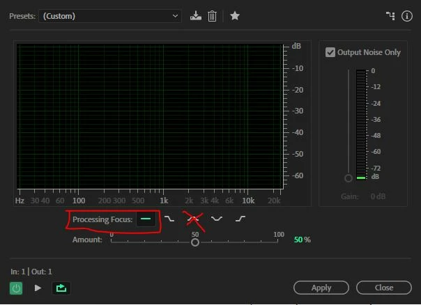 I updated to the latest version of Audition and the problem persists. I tried using the effect on a vocal track that I previously successfully removed some background white noise from. The effect created no audible difference even at 100%. In the spectral frequency display, I did notice that applying the effect made the midrange a teeny tiny bit lighter, which makes me think the effect is doing something, it's just not doing anything useful.
