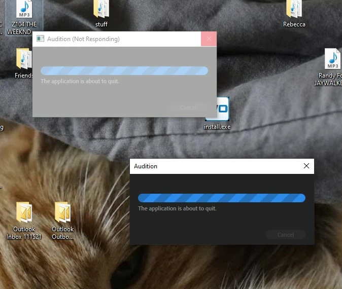 When trying to save multitrack session this message comes up sometimes with a progress bar that never advances. After waiting several minutes, clicking the close box leads to "Audition not Responding" requiring a force-quit, causing session to not close properly. I don't see any mention of this dialog box anywhere on this support site - has anyone else ever seen it?