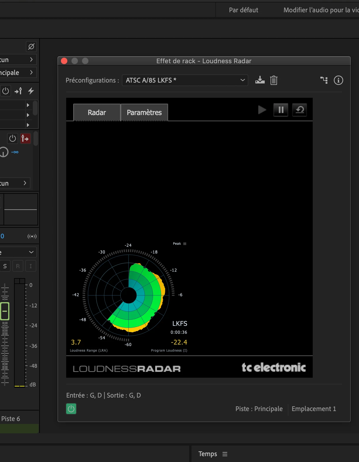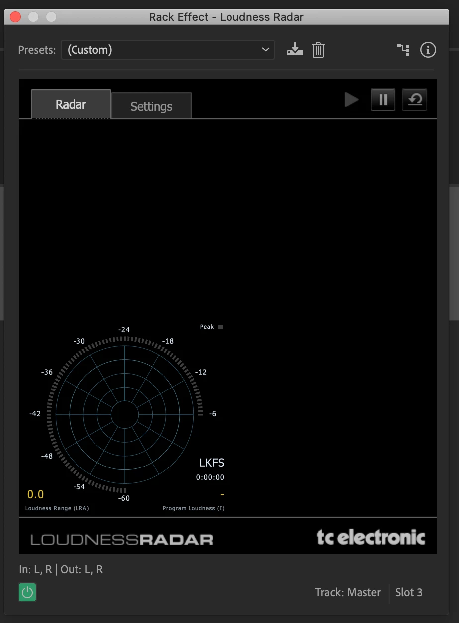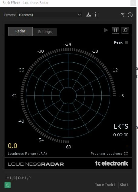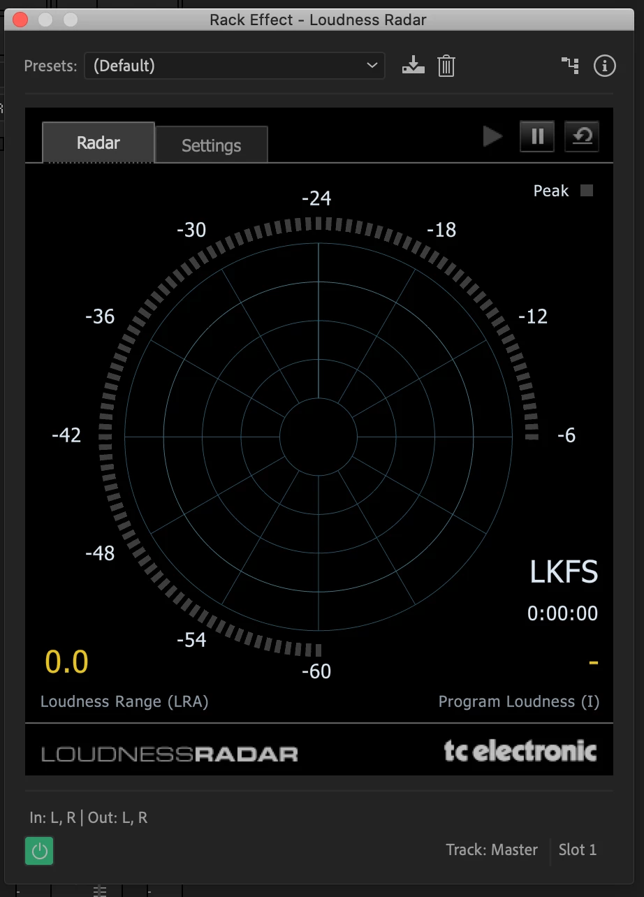 Display of the plug-in: Loudness Radar (TC Electronics)