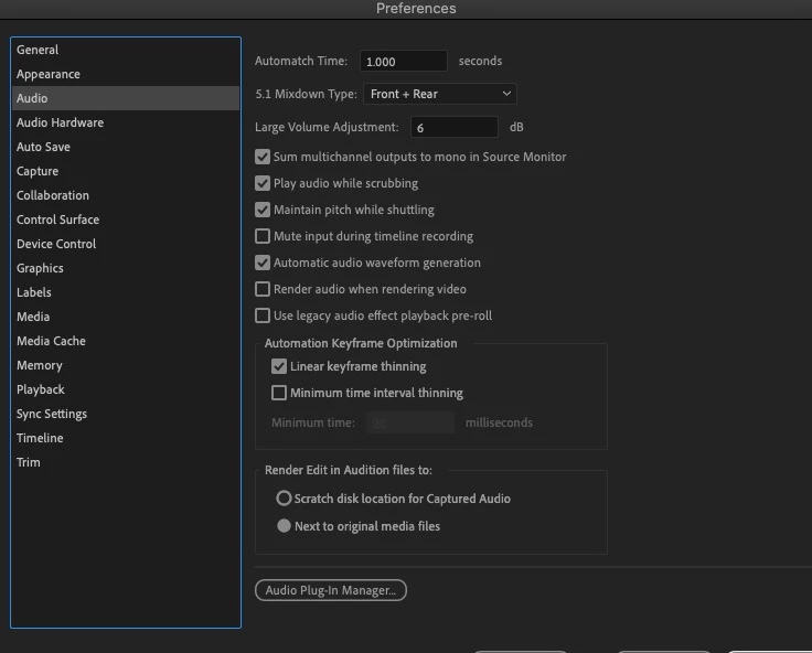 In Premiere Pro CC, you can jog/shuttle fast without the audio pitch changing much if you have that feature selected "Maintain Pitch while Shuttling" in Preferences. Can someone help me find this setting in Adobe Audition? I'm having trouble locating it. I can't imagine Audition wouldn't have it given that Audtion is an audio program. Also, in Audition I used to be able to jog/shuttle in customizable increments, like you can in Premier ("Step Forward/Back Many"). But it looks like that feature was removed in Audition, or am I mistaken? Thanks in advance for any help with these issues.