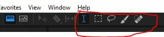 The ones I've ringed will be there. The one outlined in blue is the Time Selection Tool, and that's the one that will let you select a section of waveform, either to remove it, or copy and paste it to a different location. Just removing is easy; highlight the section you want to remove and hit the 'delete' key, and it's gone.