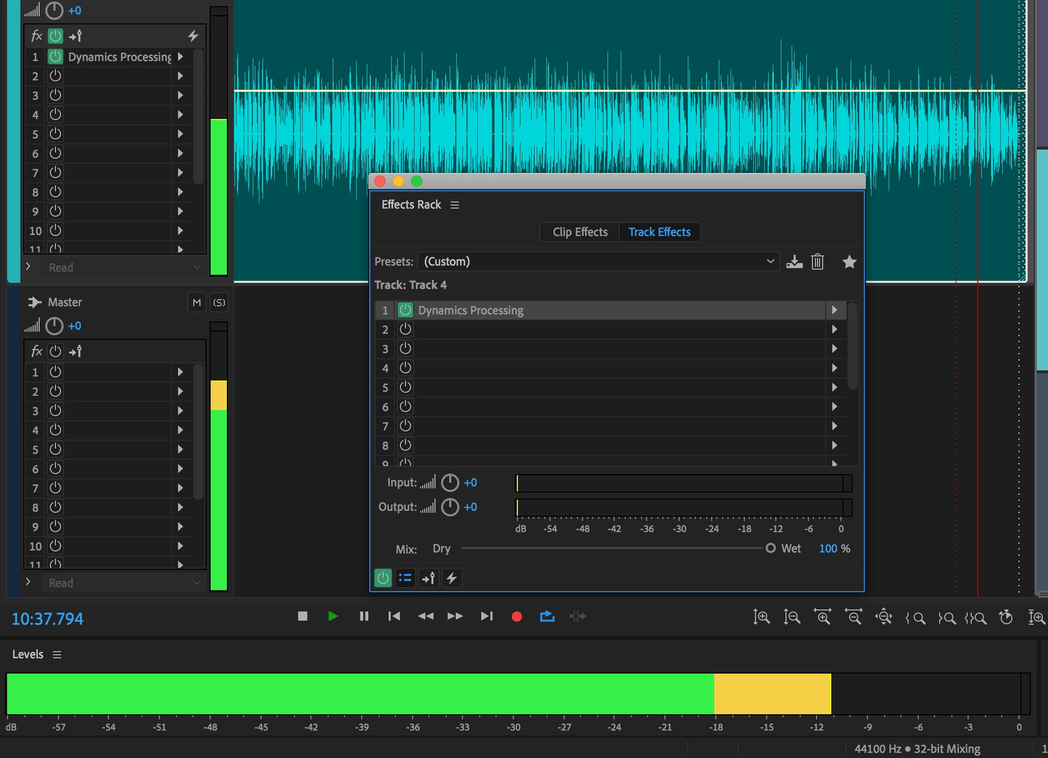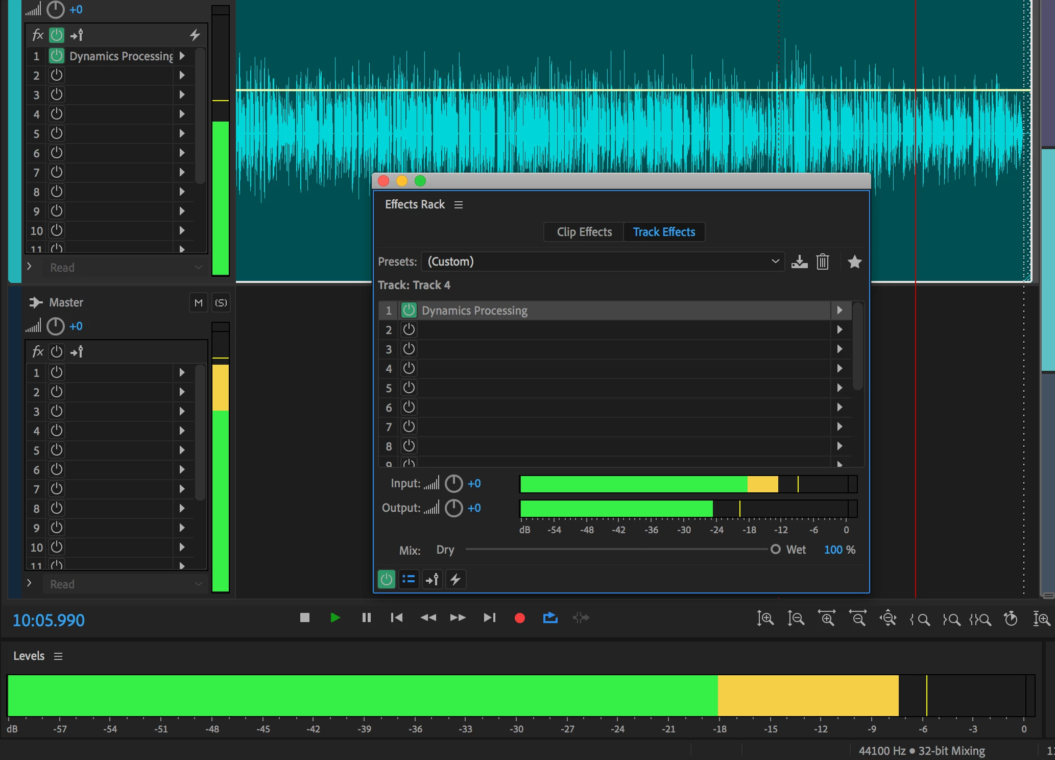 Effects Rack Input Output meters not always working in Audition CC 2019