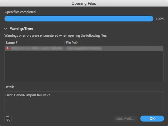 "Error: General Import Failure -7"