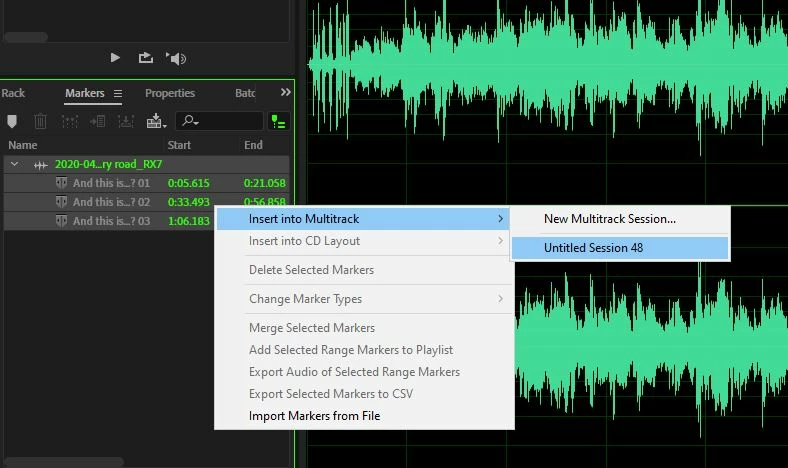 Export Audio Clips From Audition Using " Markers Convert To Range "