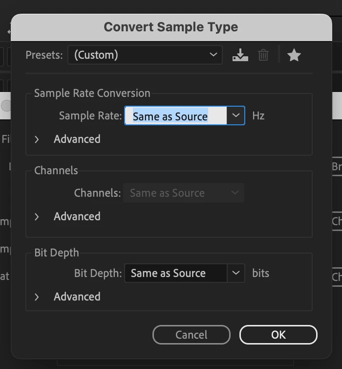 One thing I notice is that the channels options, to switch to mono, is greyed out...