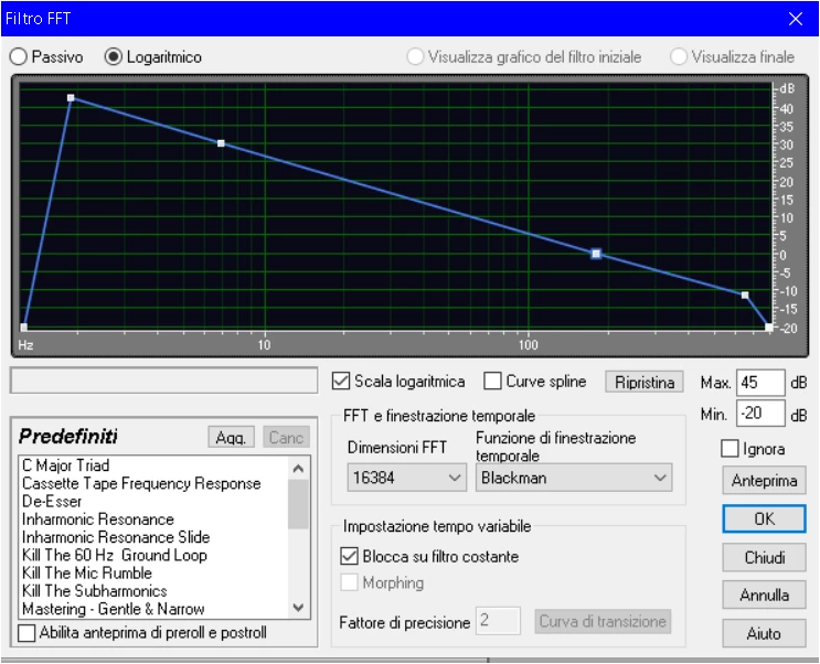 Sorry, it's probably a trivial question for you but a big deal for me. Building an FFT filter, how can I expand the dynamics of frequencies (to start at 1Hz) and dB (+45, -45)? I only see a panel with a fixed frequency value 20 Hz and sound level+ 12 dB ...