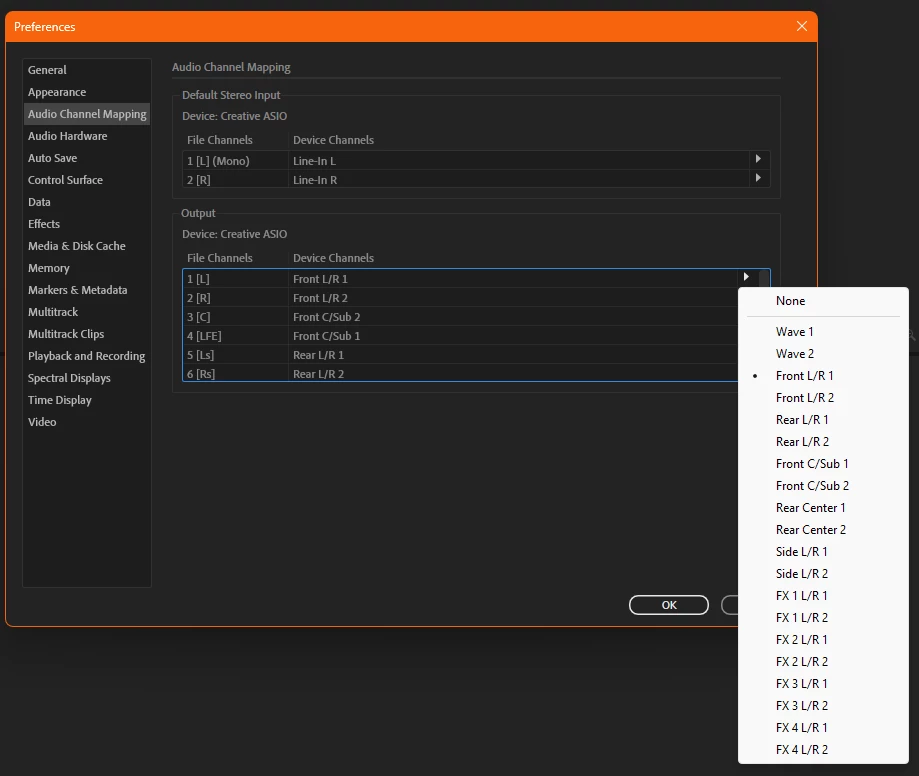 My current channel mapping in Audition: