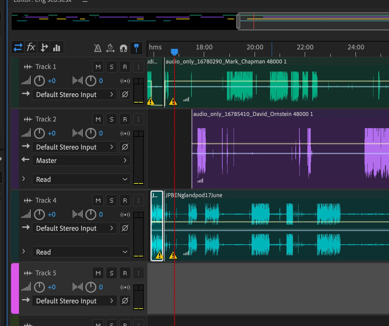 I am in the middle of an edit with four tracks on multi track using tracks 1-4. I have somehow managed to remove track 3 but I can still hear it and it is still visable in the overview above.. can anyone help with getting track 3 back? thanks