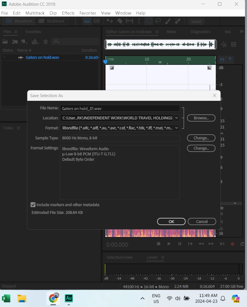 I have recorded a 30 second piece for IVR and have gone through all of the steps to save it to a ulaw file, but the client is unable to upload it to their IVA system. Any suggestions on what the issue might be?