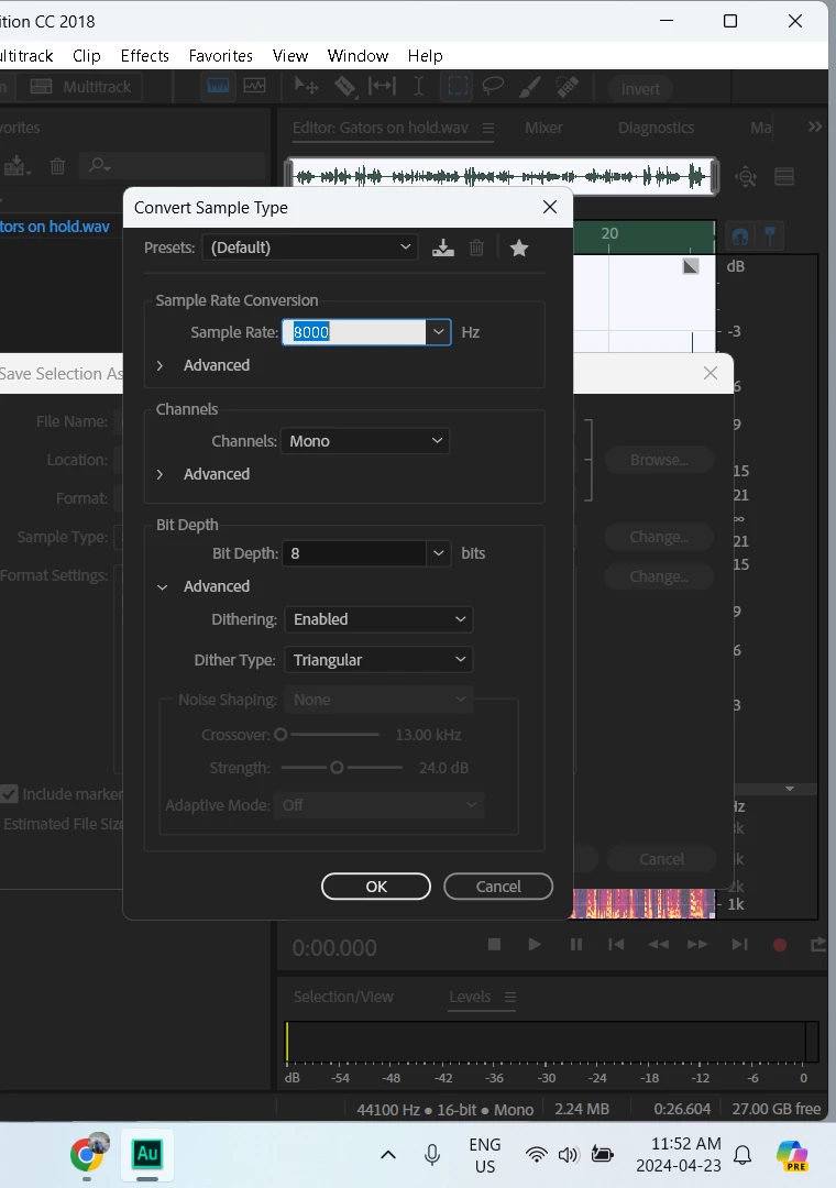 I've recorded an original wav file, then converted it to a ulaw file as per the pictures below.
