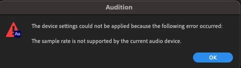HELP! Sample rate is not supported by the current audio device