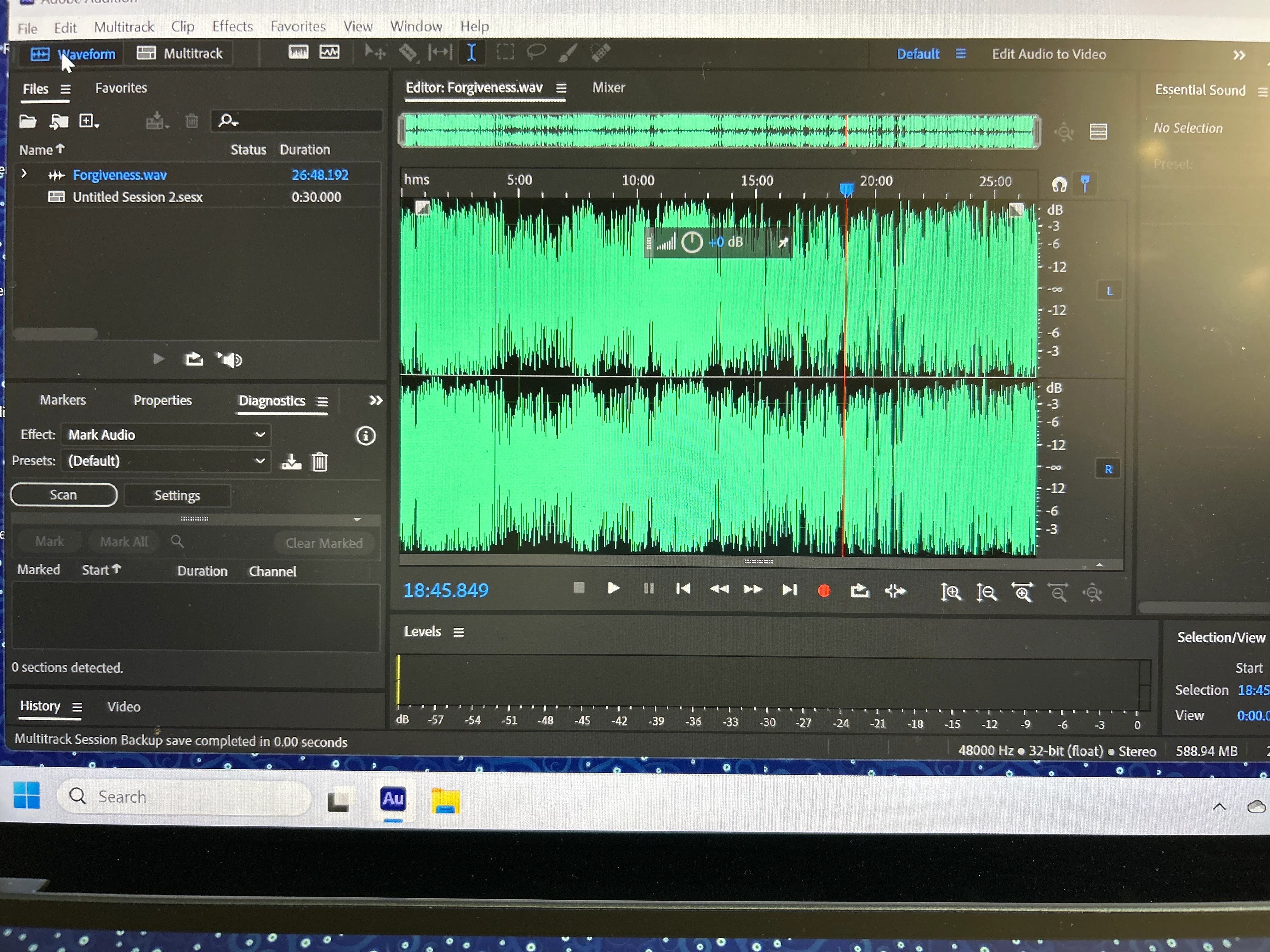 I was in the process of increasing the decibel level on a portion of my file. In the process, I accidentally clicked some thing and I don't know what. Now when I hit play it scrolls through my way file which is visible, but there is no audio and the decibel level display does not show any decibels being played. It is only happening on the one file that I was editing at the time. All other files are playing correctly. I am praying that there is a way to bring this back. Please let me know so that I can get this episode released. Thank you in advance for everybody's help.