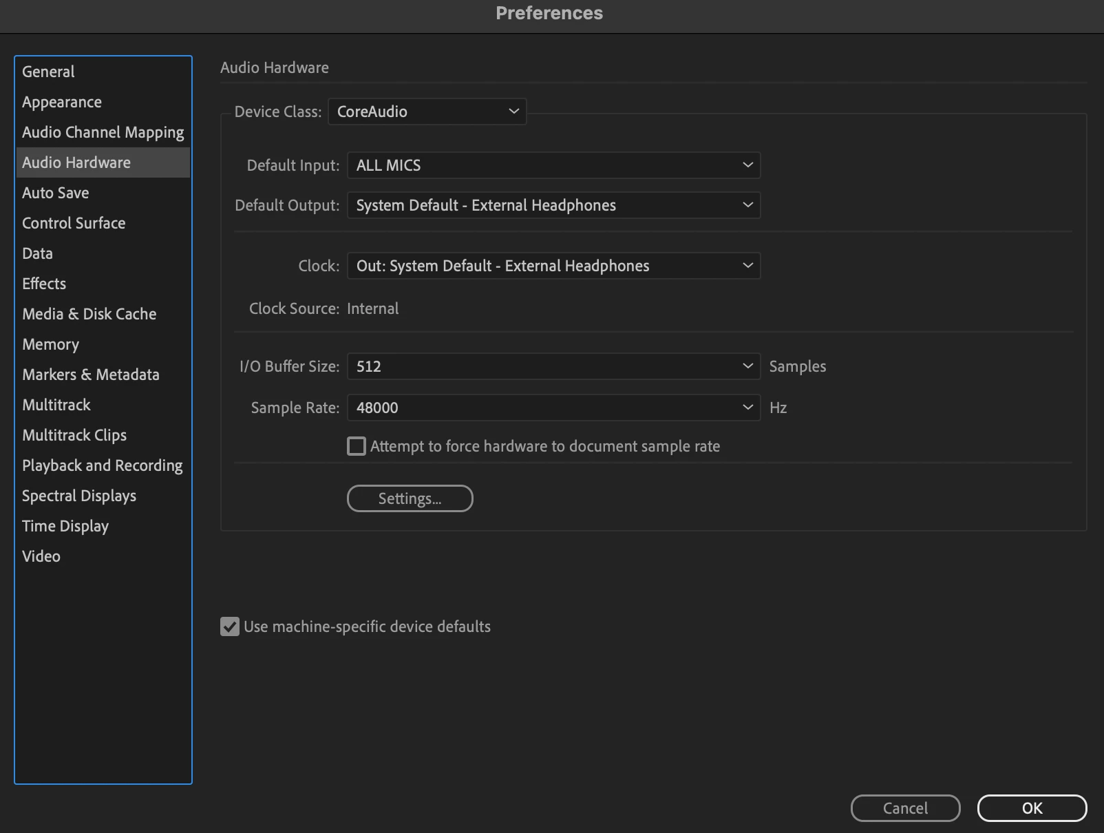 Apologies, set the wrong screenshot for the Audio Hardware window: