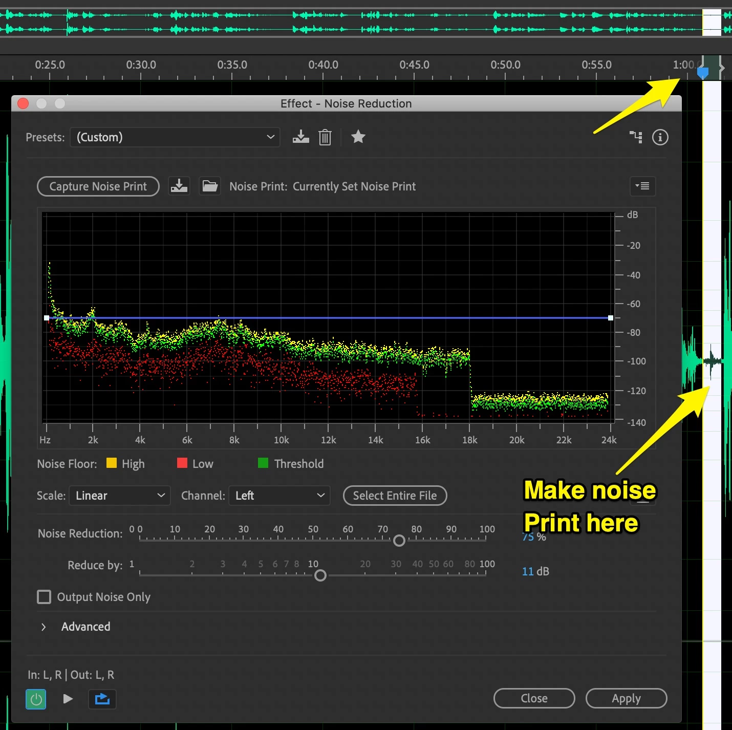Can someone please explain to me how to select a portion of audio to get a noise print? No one seems to know how, including the customer Service people...anyone???