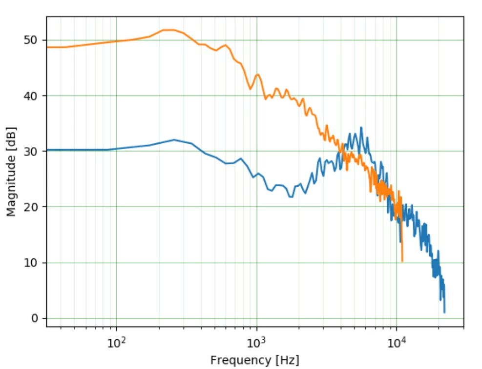 I am able to get the x-axis from the python code that I wrote, but I do not know how to get the dB y-axis. This is what I actually plot from my python code:
