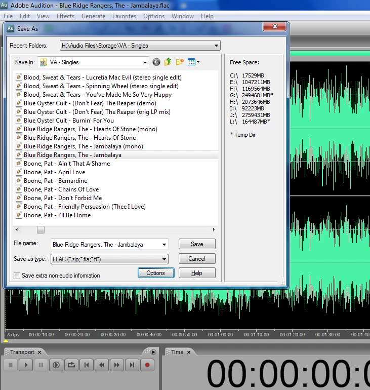 I don't know what happened. Slip of the mouse? When I want to save an audio file as .fla in Audition 3.01, somehow the filetype .zip has become one of the choices under FLAC. So I must type in the filename .fla as the name, or the software will save it as "filename.zip". How can I remove .zip as one of the choices of format in which to save a .wav (or other) file? I have to do this now for every file I want to save as FLAC. No need to emphasize how frustrating this is.