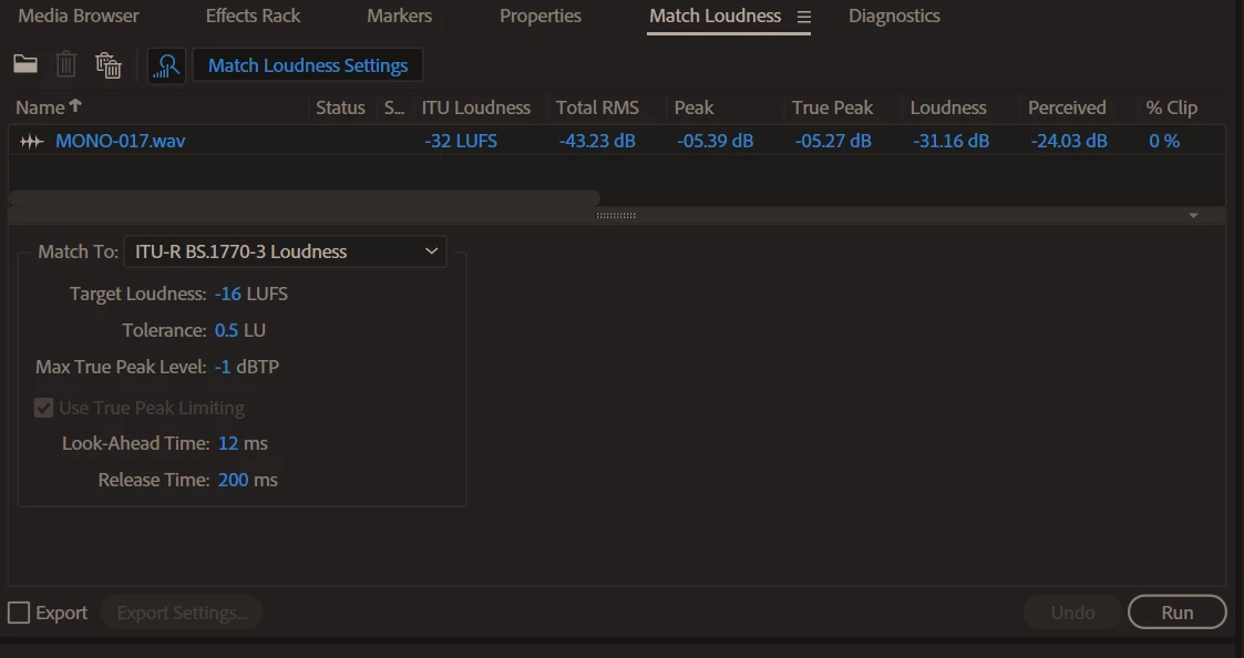 How to run match loudness to -16 LUFS without adding background noise