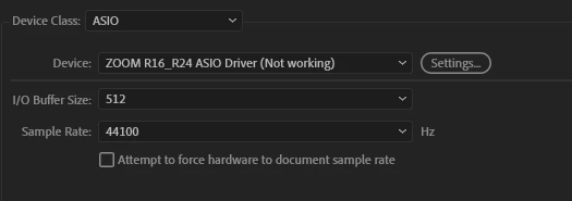 Thanks for responding Steve.  So when I set the device class to ASIO and look for the zoom driver it's there but states that it's not working.  Wonder if this means that the Zoom drivers from their website aren't up to date or that Zoom didn't take ASIO functions into account.  I've redownloaded the drivers at this point and still getting the same result.  Really I just need to be able to get audition to recognize input #5 on the Zoom so that I can get access to the phantom power.  If I can't I can still record onto the zoom device and transfer the vocal tracks over for editing but having it all goign into audition is so much more convenient.  Any other ideas on getting it to function is greatly appreciated.