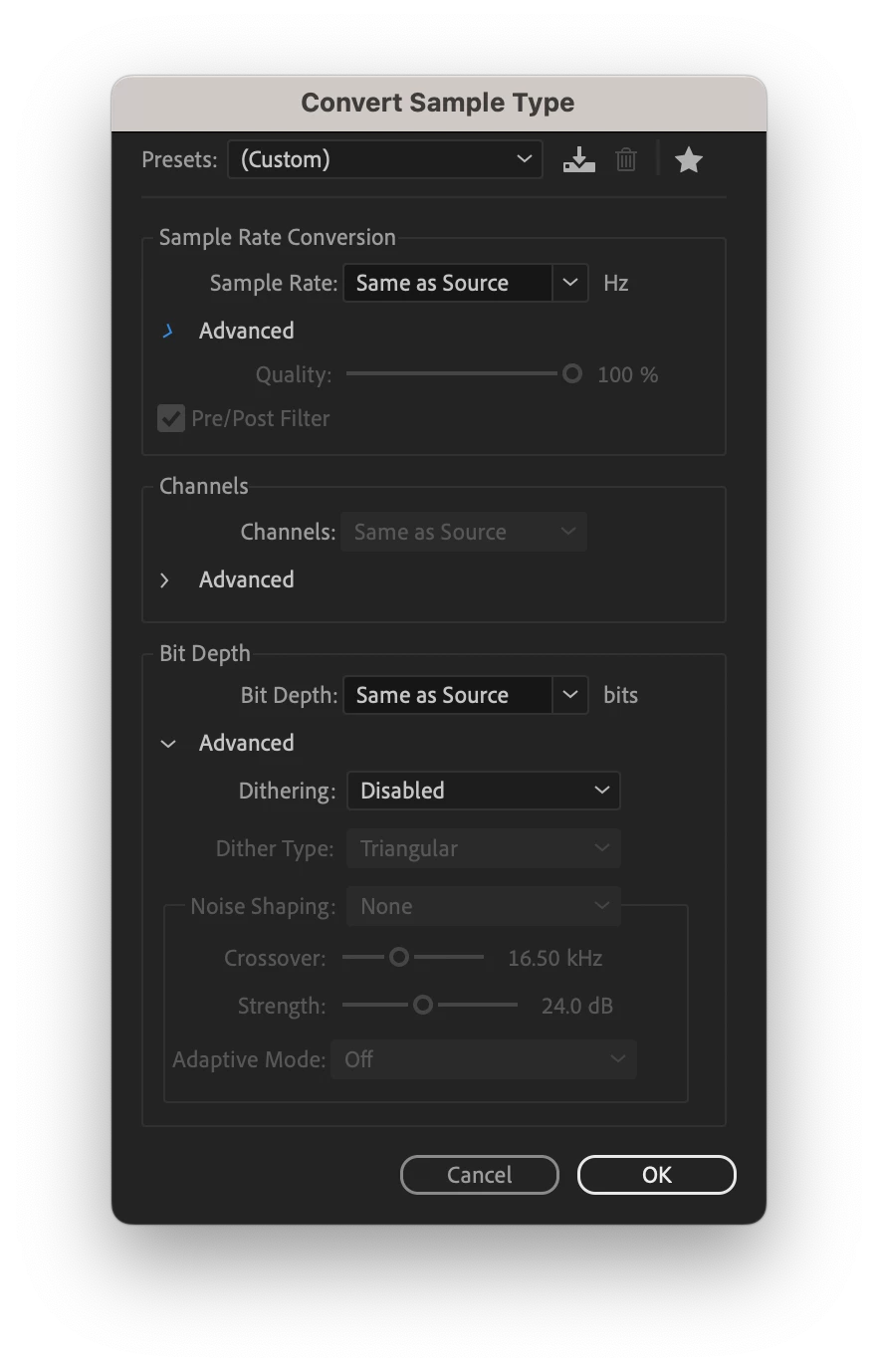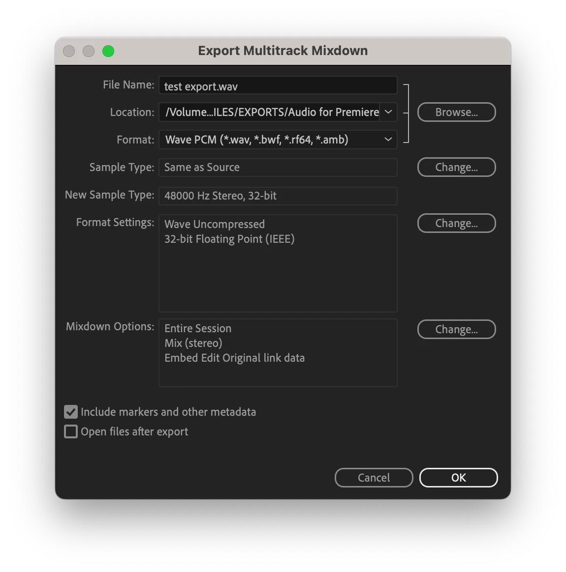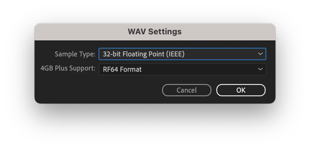My export settings are Same as Source as a WAV file.