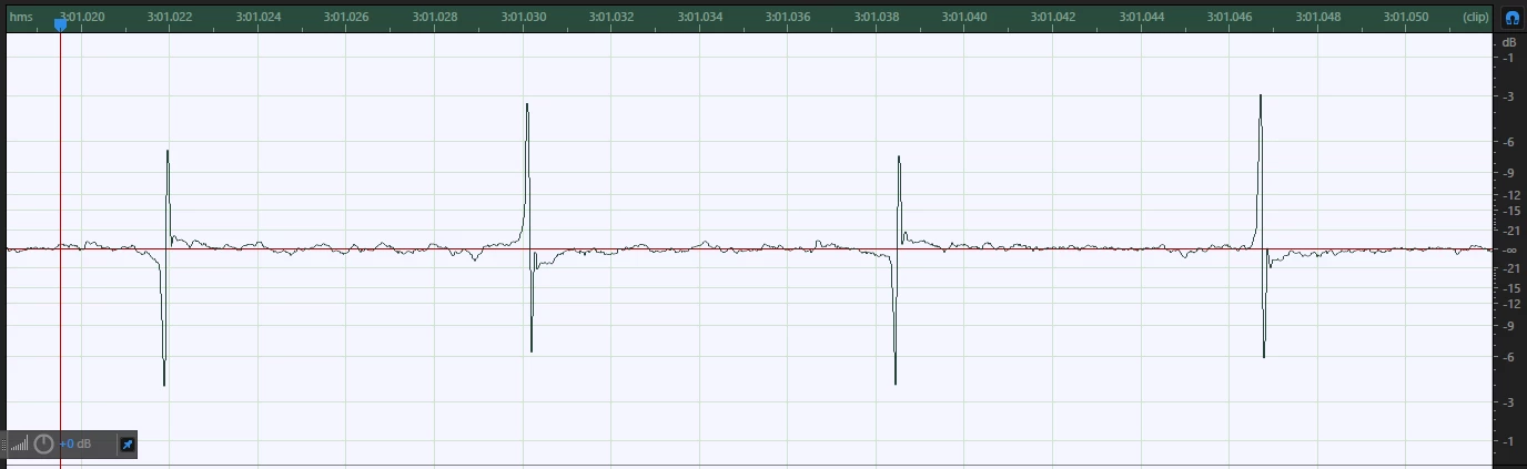 Here's the signal, with the noise spikes (note the vertical and horizontal scales! it's zoomed *way* the heck in):