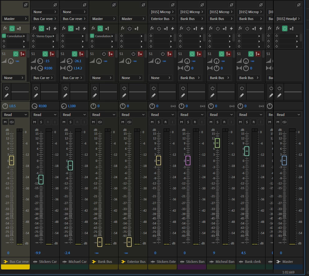 I need the Bus to not be silent in the export and I need to be able to pan.
