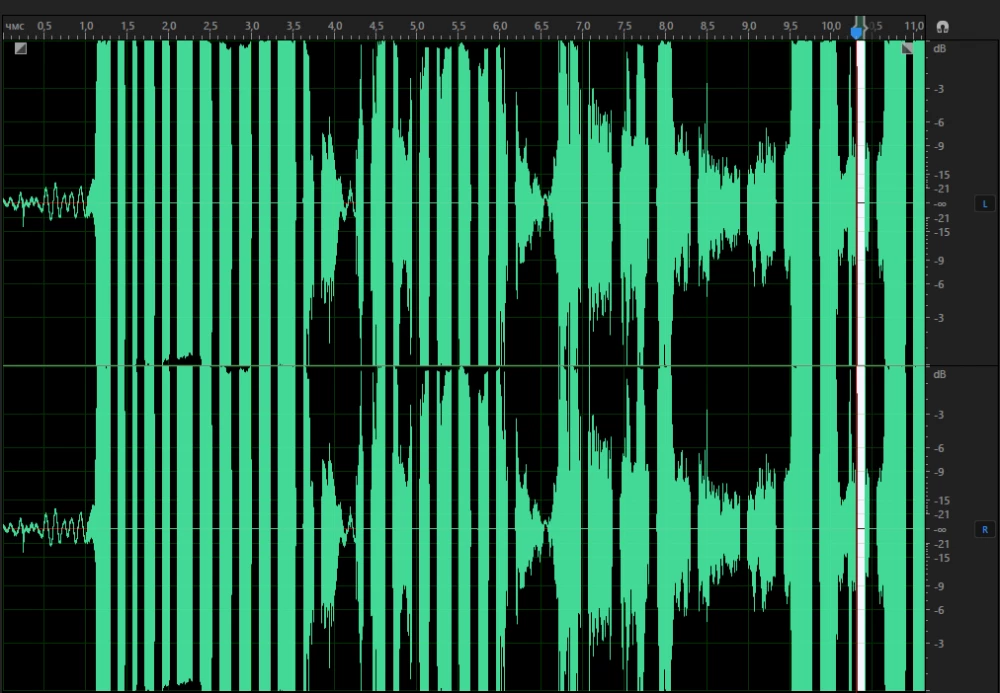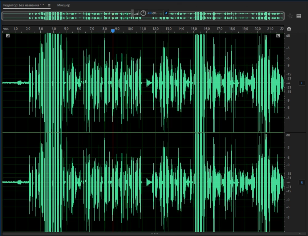 Амплитуда звука идет с задержкой голоса буд-то кричишь ааааа, но получается а а а а а, с промежутками секунд задержки.