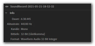 a recording on my smartphone (saved as WAV) plays Audition incorrect in double-speed (Mickey Mouse voice...). Only after saving the WAV file just as WAV again with Audacity solves this issue.