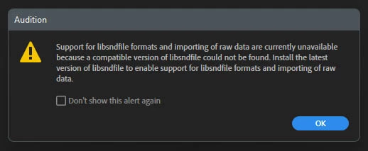 libsndfile error in latest Audition update.