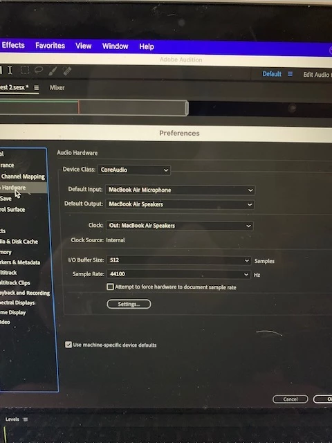 My MacBook Air mic is working fine for other apps but won't work in Audition. I've gone into audio hardware and set the input properly for the internal mic. I've gone in the audio mapping and that is set up properly. I've made sure the input on the project is right. I've tried recording and no sound. I cannot figure out what next to do. Thanks for your help.