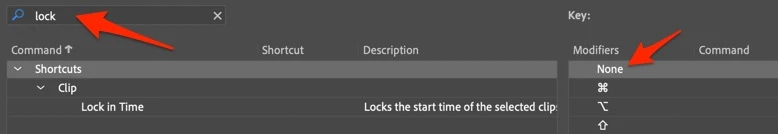 Is there a way to set a keyboard shortcut for "Lock in Time" rather than checking the box in Clip Properties?