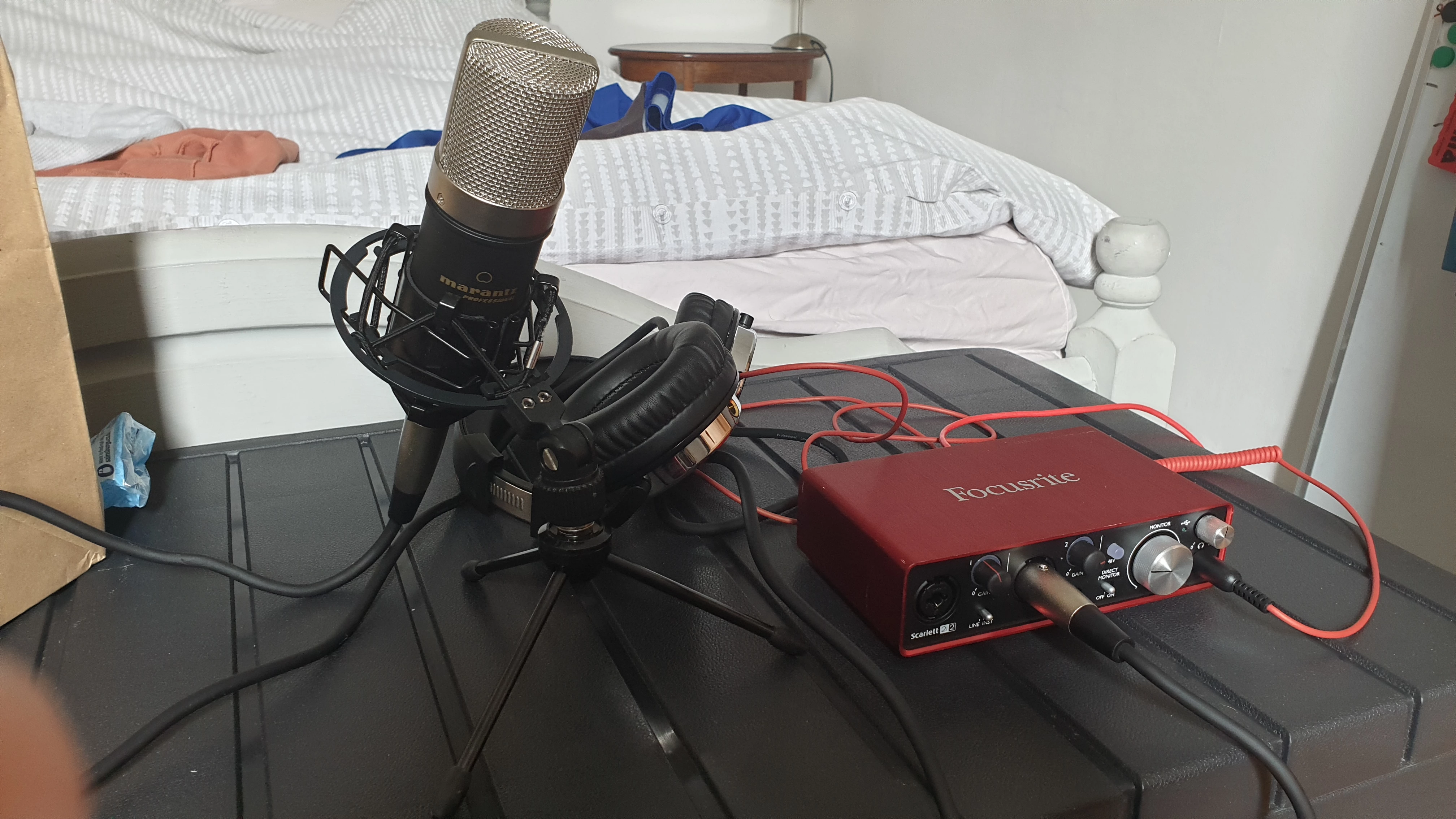 I'm quite new to audio recording to be honest and I've managed to only find a quick guide to get me started. I am basically trying to record a short jingle using focusrite and a mic for an acoustic guitar.