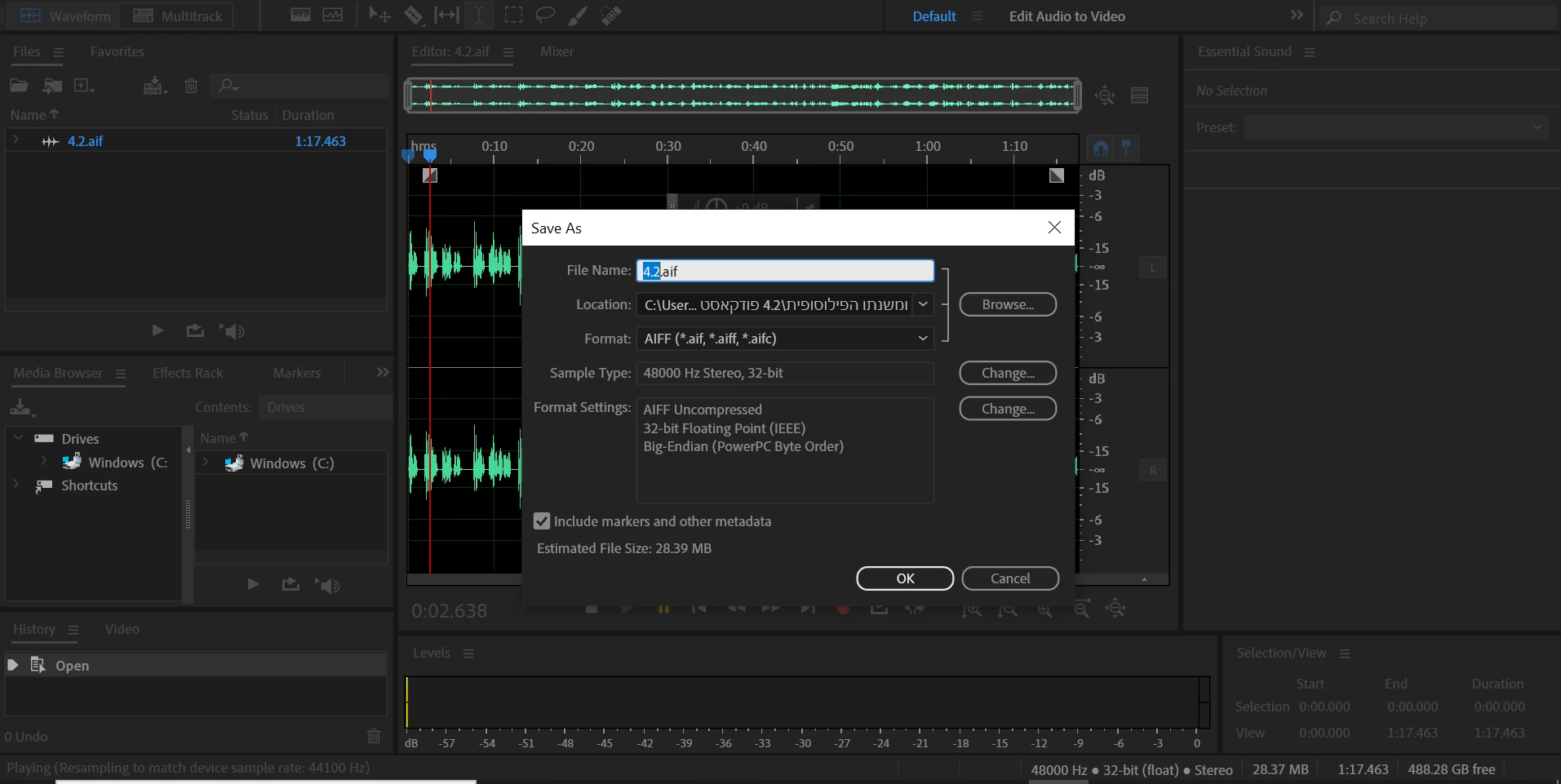 When I try to re-open the file after saving it in the AIFF format the file displayed as empty