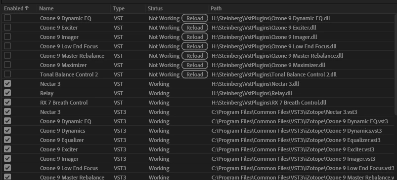 I have tried to uninstall/install Ozone. I have made sure everything is up to date. When I try to open plug-in manager under effects, the whole project freezes and I am forced to restart. Also, when I go to VST3 plugins, I notice that Ozone is there, but it is grayed out.