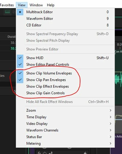 The volume envelops is working fine and the Show Clip Pan Envelopes is checked in the view menu. I am having this problem in Audition 10 on an old Mac desktop and in 13 on my Macbook.
