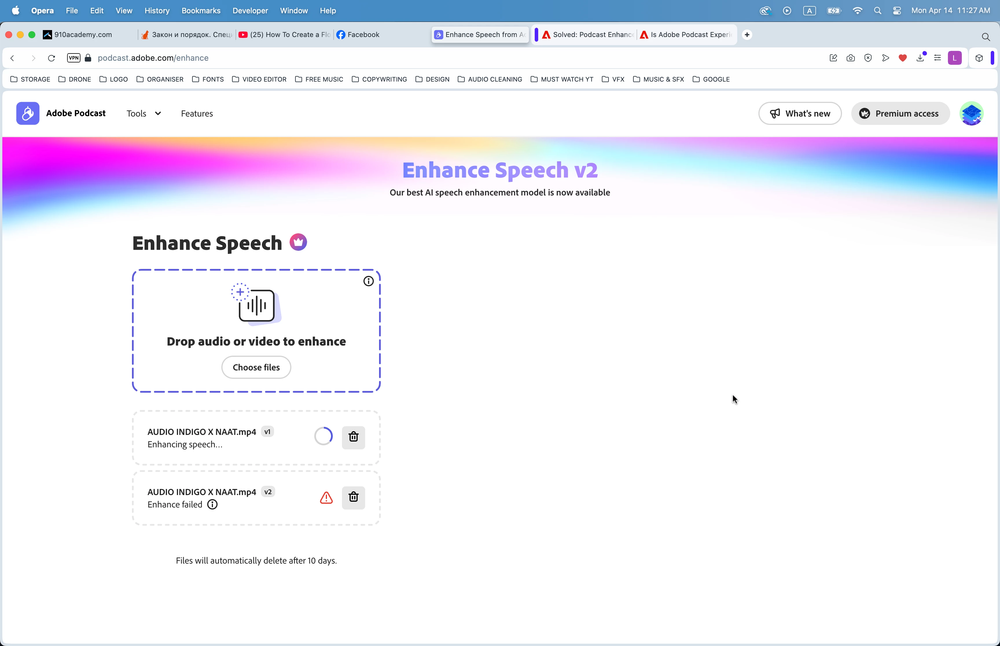 I have been trying to use Enhance for the last 4 hours and is not working... this morning it was working fine. It uploads the file then says enhancing audio, but then gets stuck and never completes the task. Anyone know whats going on?