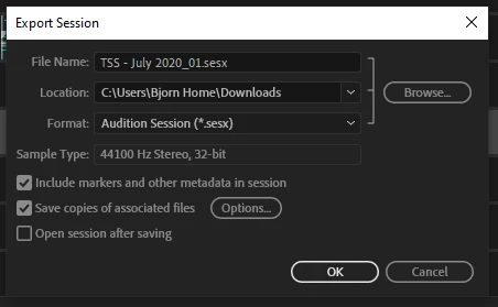 I am having a problem exporting a multitrack session (.sesx) with mp3 source files.