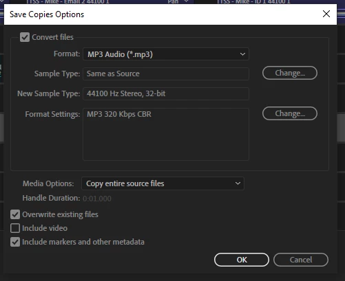 - In options i select "Convert files" and make the format MP3 320kbps and i keep the sample rate the same