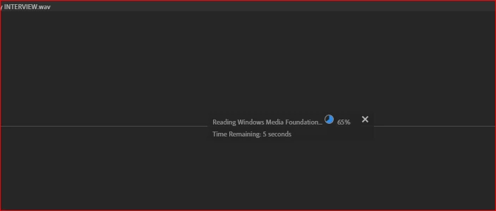 Can anyone tell me what's happening here? I'm openning a SESX file in Audition that loads a bunch of different WAV files. It'd been behaving very normally until today, when it's now taking a long time to load these WAVs and gives me this "Reading Windows Media Foundation" message while doing so. Any idea what's up with that?