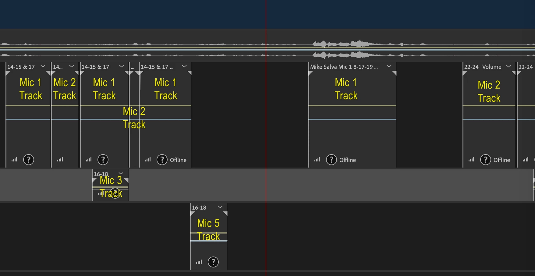 Once all the files were saved to the Imported Files folder, all the little clips on the multitrack session were greyed out with questions marks on them.