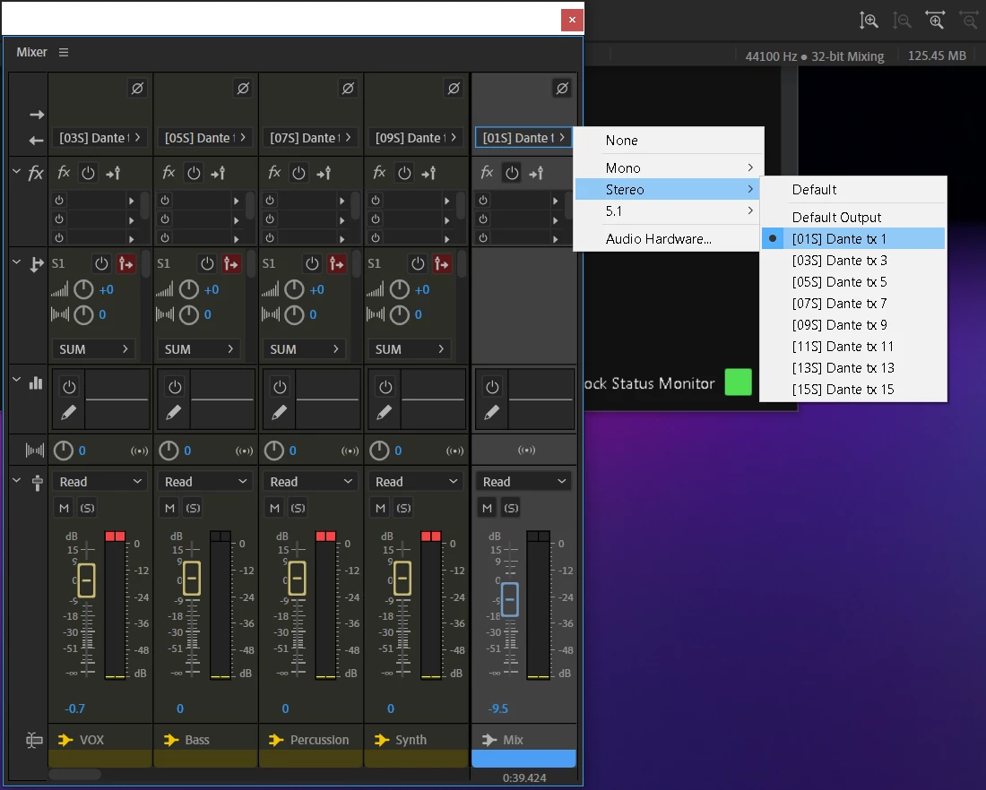I'm using Audition on a Win 10 machine running Audinate Dante VIA. For some reason I can only route the Mix bus to a Dante output. I have VIA set up as 16x16 and CAN route the mix bus to any of the DANTE outputs available but if I route the output of a bus to a Dante TX it does not transmit.