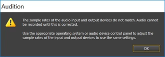 I just installed CS6 and when I try to record I get "the sample rate of the audio input and output devices do not match. Audio cannot be recorded until this is corrected".