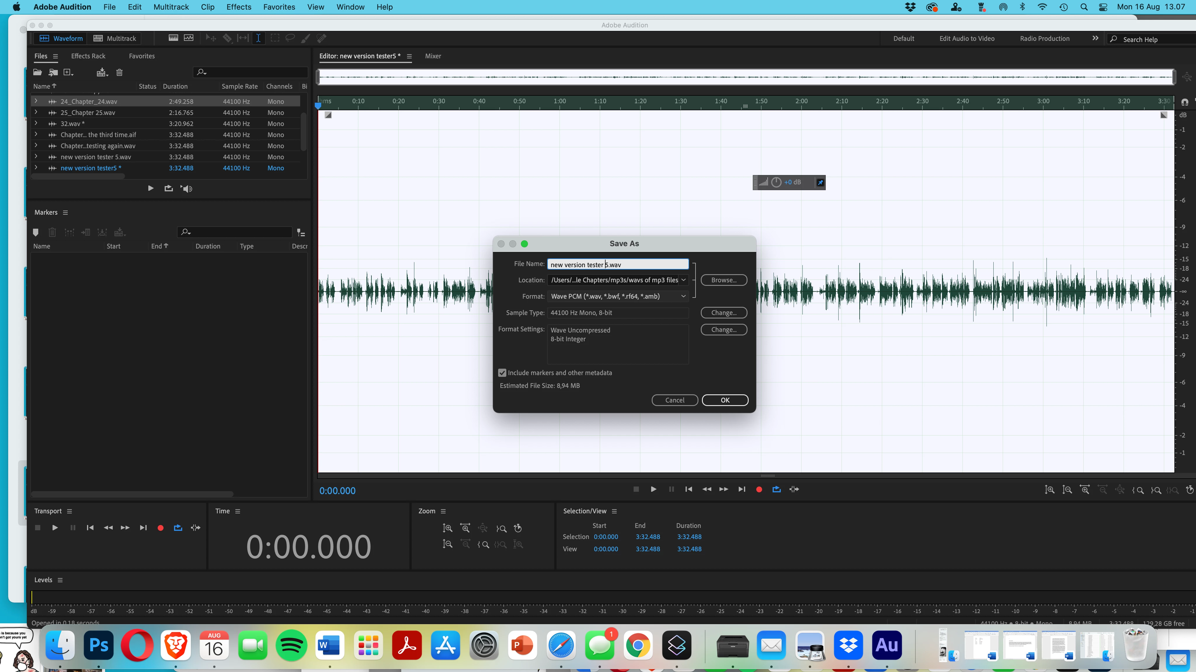See the screen shots below for how it all seems to go south when the recording (which is a .wav) is saved again as a new .wav.
