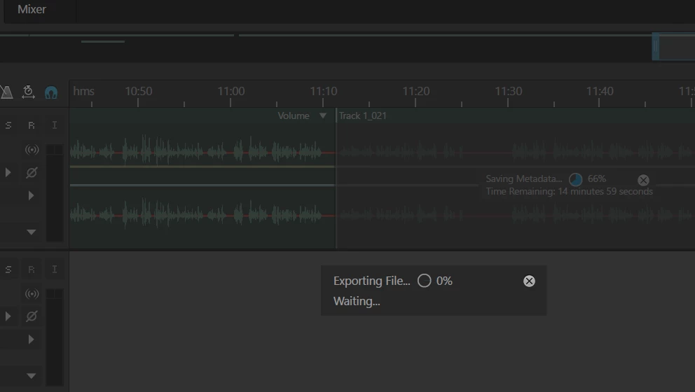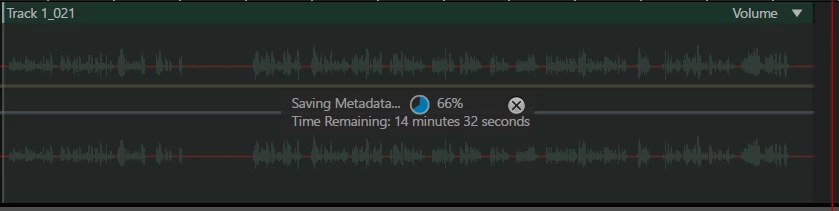 "Saving MetaData" On individual pieces of audio stuck at 66%