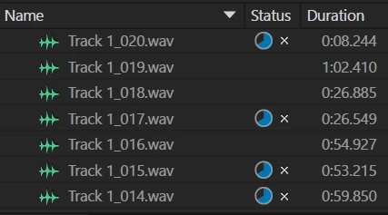 In my current project, several pieces of audio have been stuck at 66% in saving, which started automatically after I recorded them. The time keeps counting up, and I can't save the whole project itself (it gets stuck at 0%, I assume because the other clips are still saving). Any help is appreciated, this is for a homework assignment and I hope I can get an extension on the deadline!