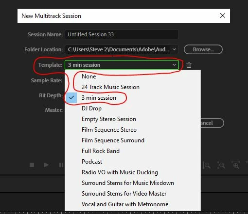 In Audition 13 the default track length seems to be 30 seconds. How do I change the default length and keep it so it always opens to the length I set? Thanks!