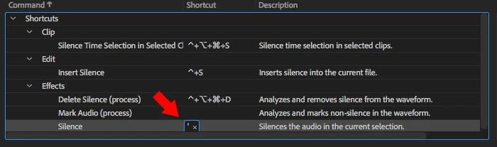I feel like I'm going to feel stupid for asking.For some reason I can't seem to find a way to assign a shortcut key to Silence in the Keyboard shortcuts menu.