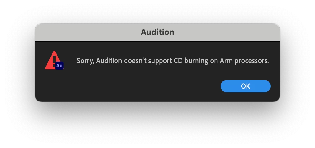 "Sorry, Audition doesn't support CD burning on Arm processors."